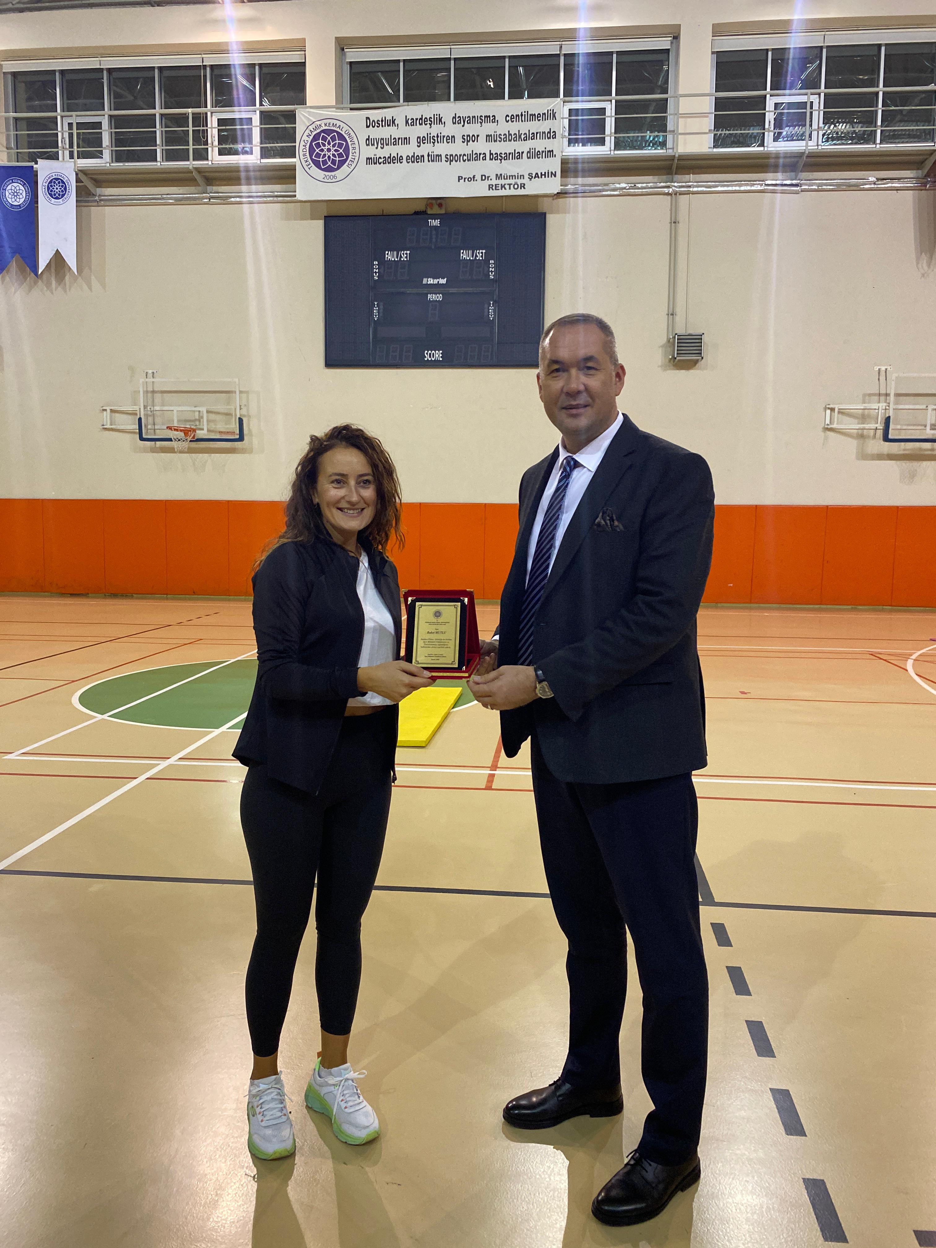 Spor Bilimleri Fakültemiz bünyesinde üniversitemiz akademik, idari personelimiz ve öğrenci gruplarına yönelik tasarlanan Zumba+Pilates etkinliğimiz spor kompleksinde gerçekleştirildi. Etkinliğe katılan grup keyifli ve eğlenceli dakikalar geçirdiler. Etkinlikte görev alan eğitmen Buket MUTLU'ya Dekanımız Prof. Dr. Umut CANLI tarafından günün anısına bir plaket takdim edildi.